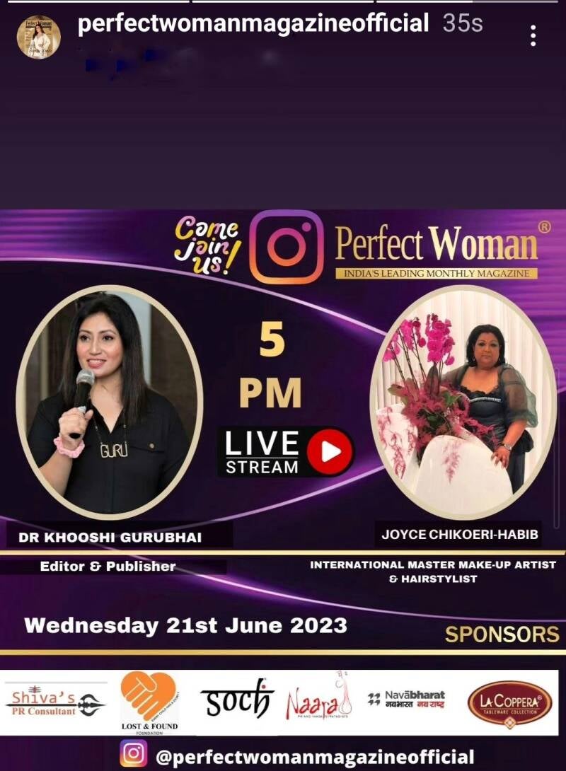 16 maart 2022: 56ste internationale publicatie in het exclusieve Perfect Woman Magazine uit India